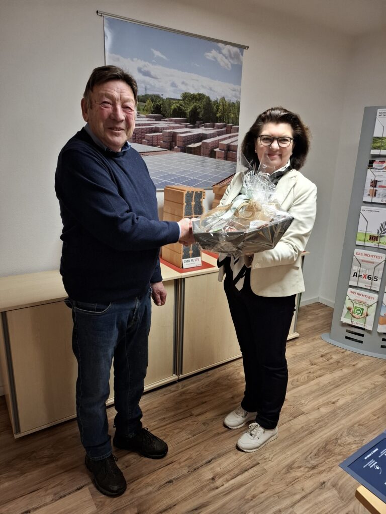 Ein Besuch bei der Ziegelei Kellerer in Oberweikertshofen durch die 1. Vorsitzende Gabi Dietrich und dem stellvertretenden Vorsitzenden Franz HöfelsauerHatte gleich 2 schöne Anlässe. Johann Kellerer, der Senior der Firma feierte kürzlich seinen 85. Geburtstag und mit einem Geschenkkorb überbrachte man die Glückwünsche.Der zweite Anlass war ein ganz Besonderer. Der Betrieb Ziegelei Kellerer wurde mit dem Mittelstandspreis des Bezirks Oberbayern ausgezeichnet. Aus mehreren Bewerbungen auch aus unseren Reihenerhielt die Firma Ziegelei Kellerer die Auszeichnung mit einer Urkunde. Ein Betrieb, mit einer über 150-jährigen Geschichte, wird jetzt geführt in der 5 Generation von Sohn Michael Kellerer und seiner Frau Brigitte.Seit 1868 produziert die Familie Ziegel in Oberweikertshofen. Damals noch nebst einem Gasthof und einer Landwirtschaft. Auf dem selben Betriebsgelände ist längst ein moderner, in die Zukunft gut ausgestatteterBetrieb entstanden, wo bereits jetzt schon wieder die Weichen für die nächste Generation gestellt sind. Die Firma arbeitet mit modernsten Fertigungsanlagen und garantiert so einen höchstmöglichen Qualitätsstandard. Gabi Dietrich und Franz Höfelsauer überbrachten die Glückwünsche der Mittelstandsunion und wünschten weiterhin viel Glück und Erfolg für die Familie und dem Unternehmen.